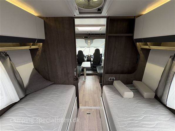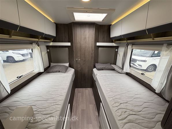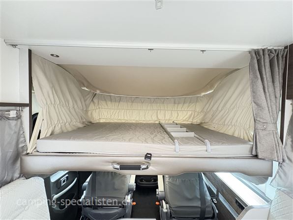 Rigtig flot Benimar med automatgear og 160HK, som er indrettet med lave enkeltsenge, hæveseng over førerhus, endebadeværelse og følgende udstyr: Alde varme og gulvvarme, cykelholder, markise, solcelle, inverter, 2 stk. lithium batterier, Truma DuoControl og udvendig gasudtag. Autocamperen har fået skiftet tandrem og kan opvejes til 3650 kg.