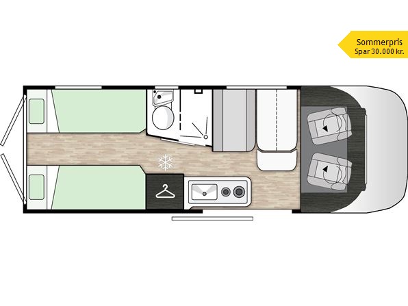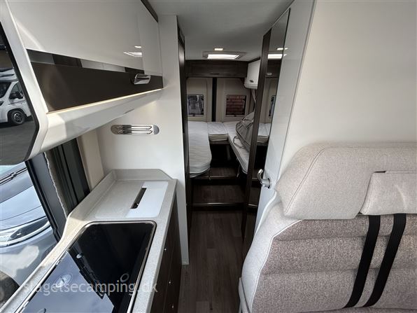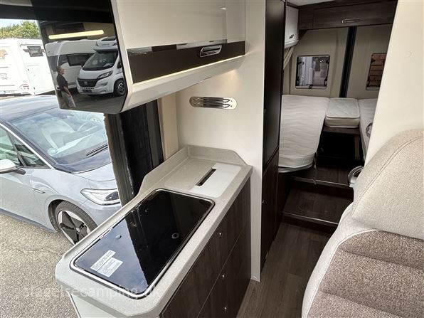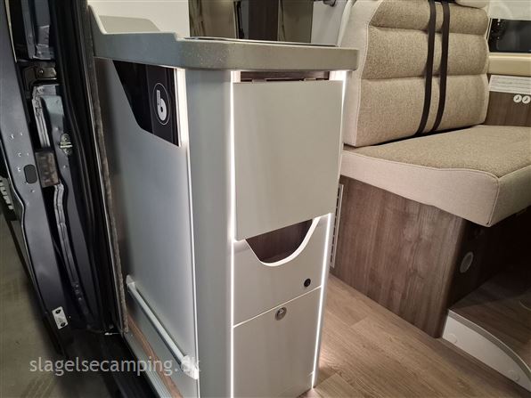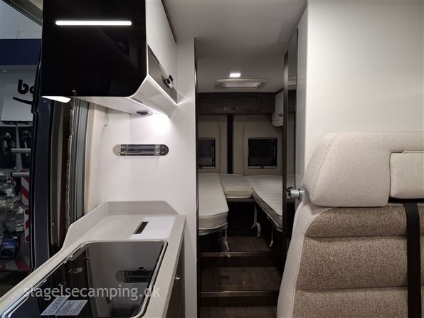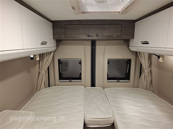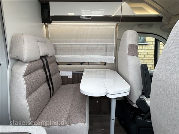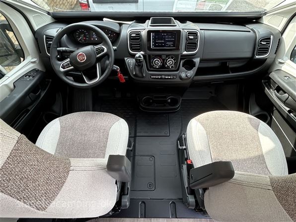 campervan med enkeltsenge i bagenden. camperen er bygget på Fiat Kassevogn 140 HK. Med Automatgear, 140 HK. LED forlygter, læderrat, plan vinduer, bakkamera, stor tagluge, Corian acryl bordplade, isoleret og opvarmet spildevands tank, Combi D6E dieselfyr med CP plus, senge kit, Derudover er den Pack Protech ( Lane assist, skilte genkendelse, automatisk op og ned blænding, fodgænger genkendelse, Dæktryks control og Skyroof over førerkabine. Bilen leveres den special farve IRON GREY samt automatgear. Ekstraudsty for kr. 74.000,- er incl. i vognens pris. Prisen er inkl klargørings omkostninger og nr. plade