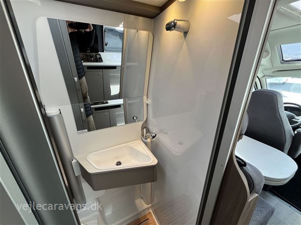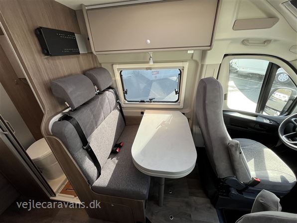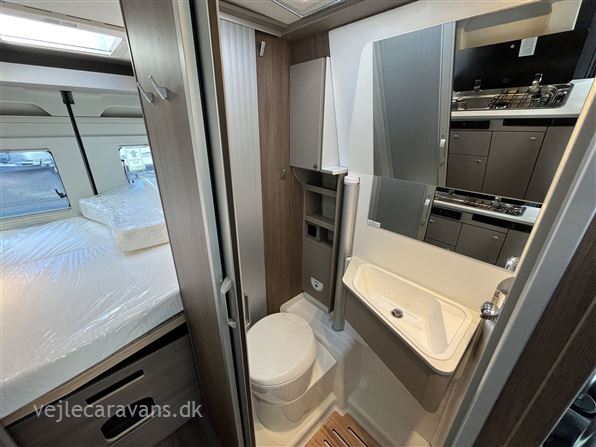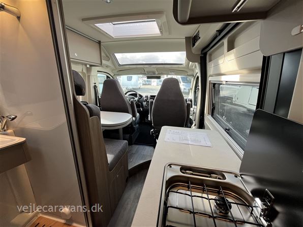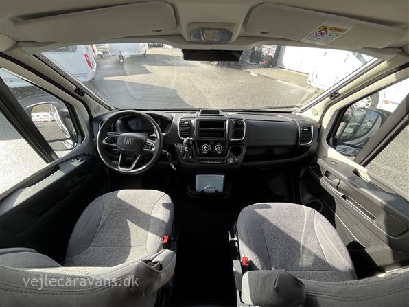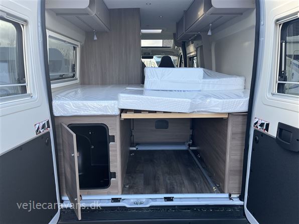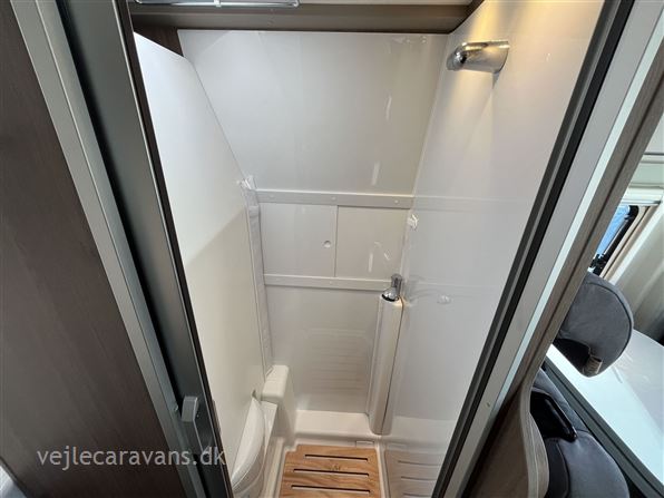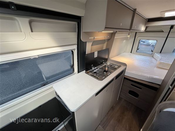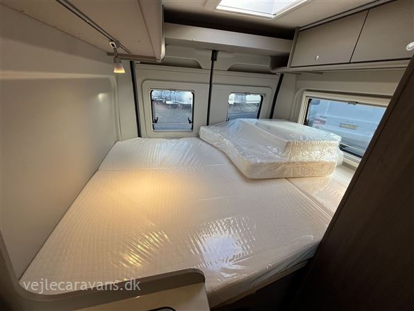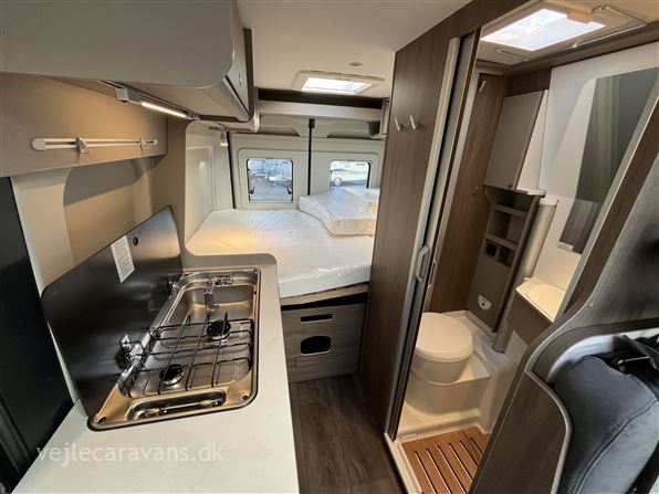 Populær CamperVan fra Carado med senge på tværs, køkken med gasblus og lille køleskab, dejlig siddegruppe samt toilet og bad kombineret. Den er bygget på et Fiat Ducato chassis og har en 140 hk motor med automatgear. Bilen er med følgende fabriksmonteret udstyr: Forberedelse til anhængertræk, MARKISE, Truma Combi 6E gasvarme m/elpatron, isoleret og opvarmet spildevandstank, sengeombygning i siddegruppe, safetypakke med Adaptiv fartpilot, 12v med tvholder. Prisen er inkl. leveringsomkostninger og nr. plader.