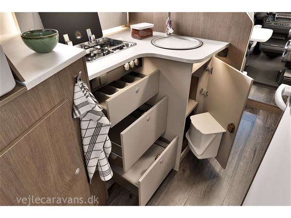 FFuldintegreret rummelig 2026 model med enkeltsenge, stort vinkelkøkken og siddegruppe. Den er udstyret med den store Pro+ udstyrspakke inkl. markise. Den indeholder følgende udstyr: Rammevinduer, optikpakke 2, stort køleskab på 156 L m/separat fryseboks 29 L, 140 hk. motor med 8 trins automatgear, Truma combi 6 E varme m/el, Forberedt til solceller, bakkamera og fladskærm, sengeombyg i soveafd., elektronisk parkeringsbremse, dæktrykssensor. Prisen er inkl. leveringsomk. nr. plader. PÅ VEJ TIL BUTIKKEN I UGE 28 - 2026.