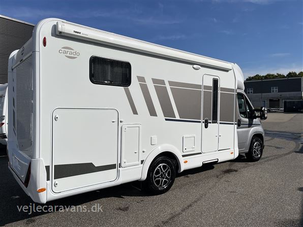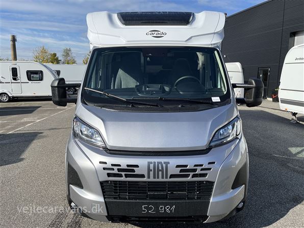 Ny 2026 model. Carado autocamper med enkeltsenge, toiletrum med svingbar væg til bruseniche, dejlig køkken med stort kølefryseskab og siddegruppe. Bilen er på Fiat undervogn med 140 hk motor og automatgear. Vognen er med følgende ekstraudstyr: Pro+ pakke med seitz rammevinduer og markise, safetypakke med adaptiv fartpilot, dæktrykssensor, sengeombygning i sovegruppe, hæve/sænke seng over siddegruppe, Truma combi 6e varme med elpatron, elektronisk parkeringsbremse, kabel forberedelse til solceller og bakkamera, 12v forberedelse med tv-holder. Prisen er inkl. leveringsomkostninger og nr. plader. PÅ VEJ TIL BUTIKKEN I UGE 26 - 2026.