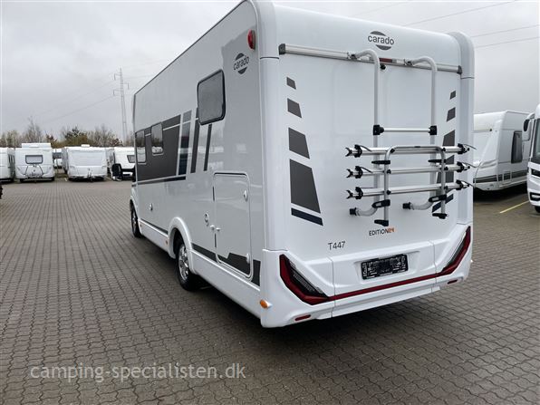 Carado T 447 Edition24 fra 2024 bygget på Ford med 155 hk og automatgear. Bilen er indrettet med en god siddegruppe, smart vinkelkøkken med mange gode opbevaringsmuligheder samt stort køleskab med separat fryser. I bagenden af bilen er der 2 store enkeltsenge, med mulighed for udtræk til fuld dobbeltseng. Bilen er udstyret med Rammevinduer, Alufælge, Elektrisk indgangstrin, Markise og cykelholder. Der er desuden monteret radio med skærm, samt bakkamera. Bilen er som ny, og har kun kørt 2800 km.