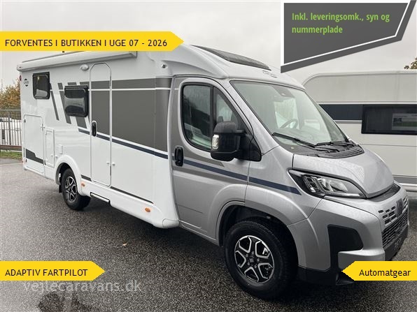 Ny model fra Tyske Carado med 140 hk motor og automatgear. Denne populære størrelse har enkeltsenge, køkken med 2 gasblus og køleskab, samt hyggelig siddegruppe. Modellen er med følgende ekstraudstyr: Clever-lift seng, isoleret spildevandstank, markise, safetypakke med adaptiv fartpilot, 12v TV-forberedelse med tv-holder, Elektrisk gulvopvarmning, Truma Combi 6E gasvarme m/elpatron, dæktrykssensor, sengeombygning i soveafd. og siddeområde, Forberedt til solceller og bakkamera. Prisen er inkl. leveringsomkostninger og nr. plader. FORVENTES I BUTIKKEN I UGE 07 - 2026.