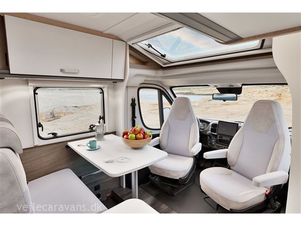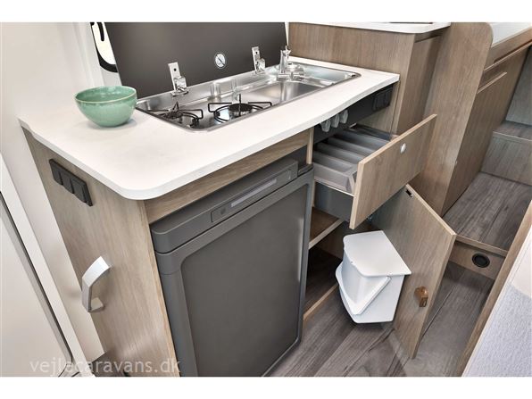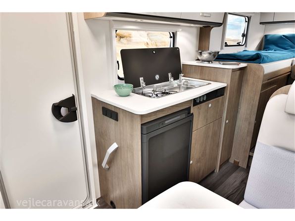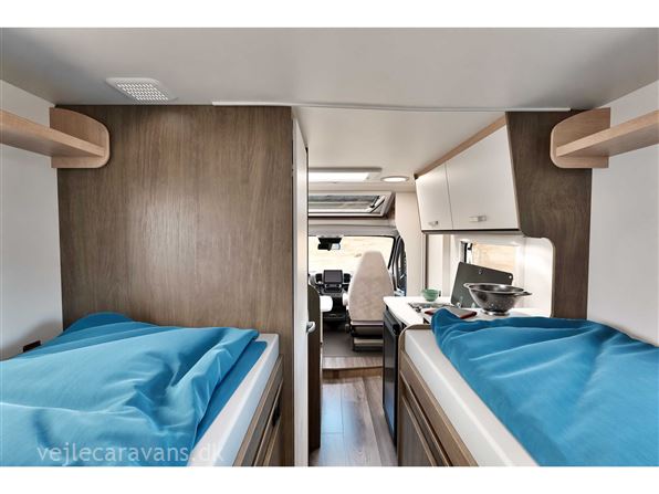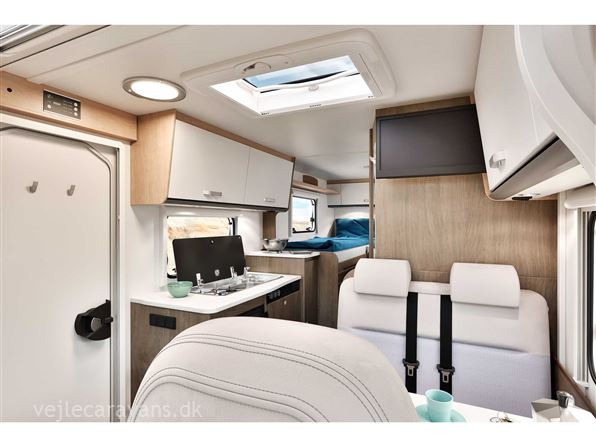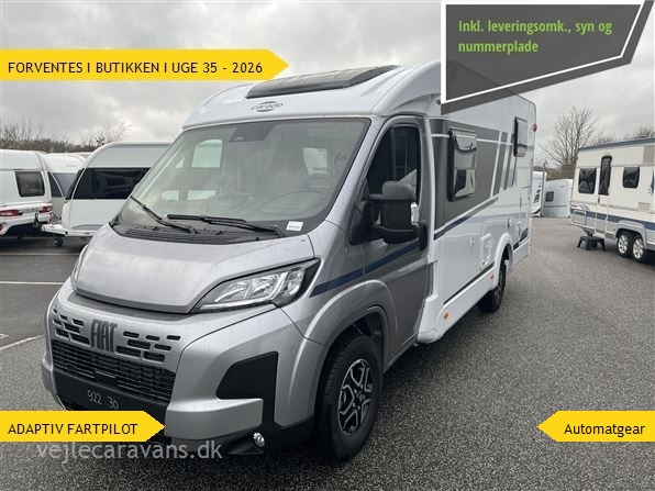 NY 2026 MODEL. En af de mest populær camper med enkeltsenge i bagenden, toiletrum med brusekabine, køkken samt sideområde i midten af vognen. Denne vogn er fra fabrik ekstra udstyret med 8 trins automatgear, elektronisk parkeringsbremse, safetypakke med adaptiv fartpilot, Traction+, 16" Alu fælge, Sengeudvidelse i soveafd., Trærist i brusebund, Forberedelse for solceller og bakkamera, samt Truma Combi 6E. Prisen er inkl. leveringsomk. og nr.plader. FORVENTES I BUTIKKEN I UGE 35 - 2026.