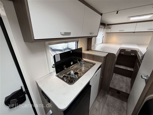NY 2025 MODEL. En af de mest populær camper med enkeltsenge i bagenden, toiletrum med brusekabine, køkken samt sideområde i midten af vognen. Denne vogn er fra fabrik ekstra udstyret med 8 trins automatgear, Traction+, 16" Alu fælge, Sengeudvidelse, Trærist i brusebund, Forberedelse for solceller og bakkamera, samt Truma Combi 6E. PRISEN ER INKL. leveringsomk. og nr.plader.