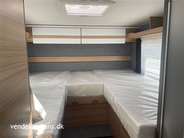 90 års jubilæumsudgaven af Dethleffs populære Just serie som vi har valgt at opgradere lidt med følgende ekstra udstyr som er indregnet i prisen; Familiepakke: Skyroof over førerhuset, Bodelsdør med vindue inkl. mørklægning og centrallås, Plissegardiner i førerhuset, Panorama-tagluge 70x50 cm over siddegruppen, Light Moments: Indirekte belysning over overskabene, Light Moments: Indirekte vægbelysning (stemningsbelysning), Sengeombygning enkelt- til dobbeltseng, Hyggelig L-siddegruppe med fritstående og sænkbar bordben og 2 integrerede 3-punkts-seler, Serviceluge venstre side. Chassispakke: LED kørelys, Multifunktions Læderrat -og gearknop med lædermanchet, Klimaanlæg i førerhus, Instrumentbord med alu-applikation og 16" Alufælge. Faktisk vægt = kontrolvejet som den står ved modtagelsen fra fabrikken.