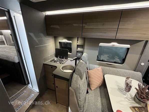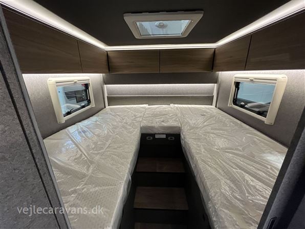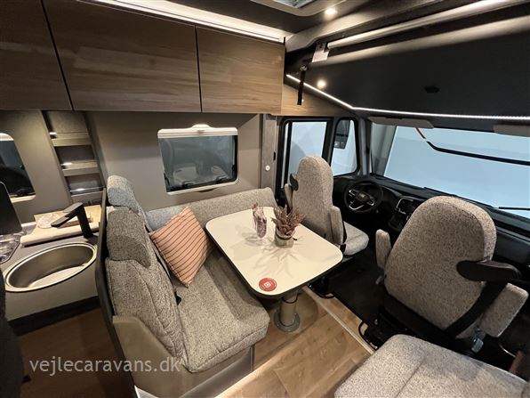 Ny 2026 Fuldintegreret autocamper i den luksusriøse Trend serie med 180 hk motor og automatgear, enkeltsenge, separat bad og bruseniche, vinkelkøkken med 2 gasblus og stort køleskab/fryser, samt stort siddegruppe. Modellen er udstyret med følgende ekstra udstyr: Alde vandbåren varme med vandbåren gulvvarme, fuld XPS vinter-isolering, markise, multimedieanlæg med dab, navigation, samt bakkamera, hæve/sænke seng over førerhus, sengeombyg til soveafd., GT designpakke med rammevinduer, fuldaut. klimaanlæg og elek. parkeringsbremse. Prisen er inkl. leveringsomkostninger og nr. plader. 10 års tæthedsgaranti