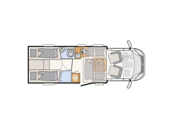 Ny 2026 model delintegreret Trend Fiat model med 140 hk. motor med automatgear, enkelt senge, separat bad og toilet, vinkelkøkken med 2 gasblus og stor køleskab m/fryseboks, samt stor face to face siddegruppe. Modellen er udstyret med følgende ekstraudstyr: Active pakke med sengeombyg. i soveafd., multimedieanlæg med navigation, DAB radio og bakkamera, forberedt til solceller, elek. parkeringsbremse, fuld led-lys, aut. klimaanlæg i bildel, isoleret spildevandstank, Truma combi 6e varme med elpatron og rammevinduer. Prisen er inkl. leveringsomk., og nr. plader. 10 års tæthedsgaranti