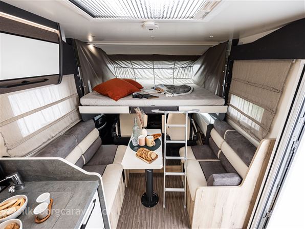 Forventes på lager december 2025 Denne camper er standard med disse pakker: PACK FIAT 16” tofarvet alufælge - Rat og gearknop i læder - Techno instrumentbord - Elektrisk håndbremse - TPMS(dæktrykskontrol) PACK EXPO Pioneer 9” radio Apple Carplay / Android Auto - Bakkamera - 200W solpanel med MPPT regulator - Mørklægningsgardiner i kabinen Denne camper kommer hjem med disse ekstra pakker: PACK MATIC + 180 HK (68.000,-) 8-trins Automatgearkasse + 180 Hestekræfter PACK PLEIN AIR (11.000,-) 5m Markise i antracit - Udvendigt gasudtag + bruser i garage GULVVARME (8.000,-) TRUMA COMBI 6E (4.000,-) Alle pakker er inklusiv i udsalgsprisen!