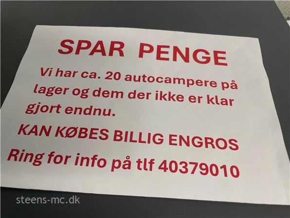 stort kørerkort - 2 siddegrupper - enkeltsenge - gardin i førerhus - dobbeltseng - kassettegardiner - airbag førersæde - airbag passager - servostyring - man. klima bildel - anhængertræk - alkove - fartpilot - klimaanlæg i kabine 220 V - el-opvarm. sidespejl - turbo - 160 HK - 6 gear - motor volume 3,0 - selepladser til 6 men siddepladser til 8 - reservehjul - vinterfælge m/dæk - alufælge - holder til 4 cykler - tagræling - køleskab - separat fryser - stort toiletrum - 4 kogepladser - ovn - brusekab. i toiletrum - centralt lysanlæg - radio m/navi anlæg - udv. el - bak kamera - tyverialarm - gasalarm - el varme - Truma vand varme - Webasto varme - TV medfølger - El makise - luftaffjedning i bag - sælges engros. - bemærk km. 63300, eventuelt i bytte med MC, bil, campingvogn eller camper.