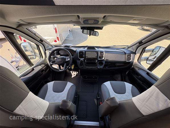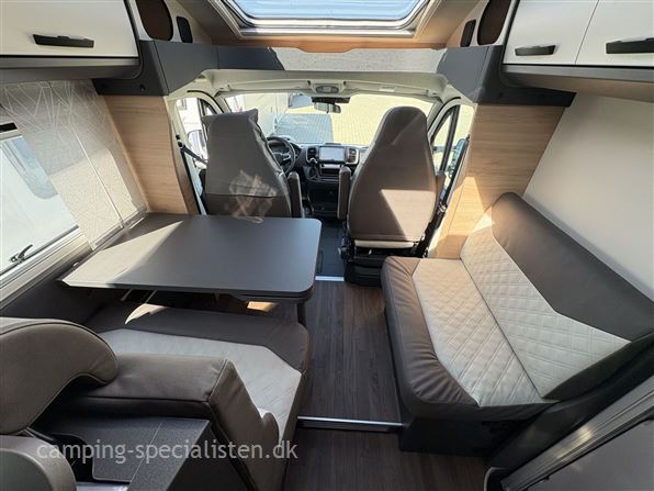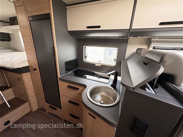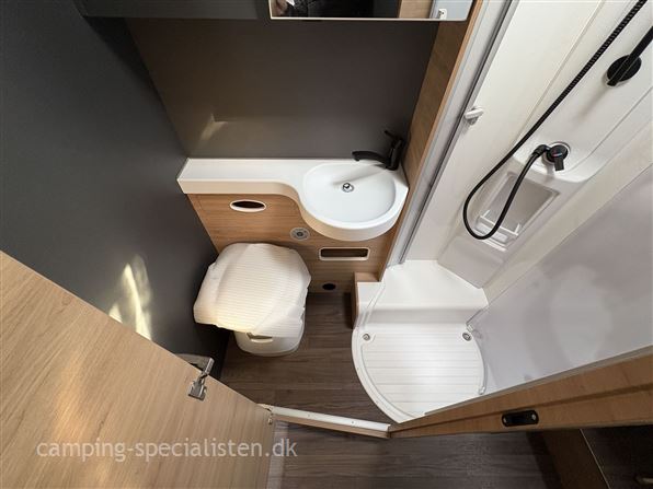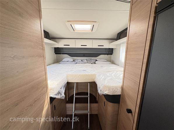 Toiletrum med separat bruseniche, smart vinkelkøkken, der er udstyret med alt, hvad du behøver. Hyggelige siddegruppe, der er ideel til både måltider og hyggelige aftener. Komfortable enkeltsenge, der er placeret over den rummelige garage, perfekt til opbevaring af dit udstyr. Truma Combi varme sikrer en behagelig temperatur hele året rundt.