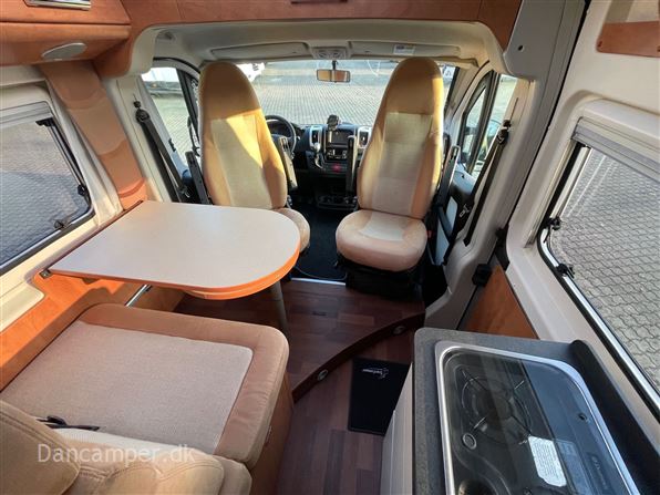 Malibu 600 DB 150 hk motor og automatgear. Fantastisk flot og dejlig kompakt camper under 6 m med tværstillet seng som kan klappes op for bedre udnyttelse af bagagerum. Dejlig siddegruppe med behagelig siddekomfort ved drejbare forstole. Super funktionelt køkken med store skuffer og klapbar bordplade samt 80 liter køleskab. Toilet og bad med svingbar toilet som giver perfekt plads til bruseniche bag foldevægge. Markise, fuldautomatisk klimaanlæg, Tv & antenne, radio/ cd med bakkamera og navigation, el- trin, truma combi gasfyr, plissegardiner i førerhus og bodel. Der tages forbehold for prisændringer og tastefejl.