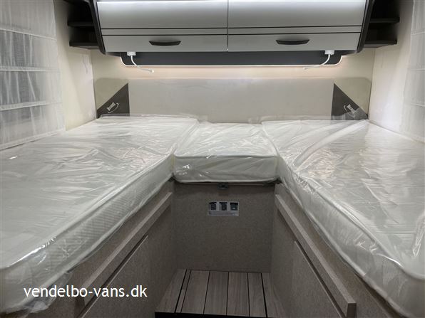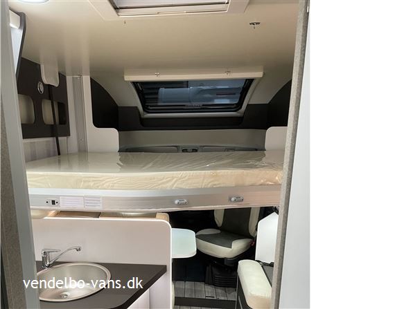 Denne vogn er købt hjem med 5 S.sele pladser, Start pakke (Campingdør med 2 låsepunkter og tilkoblet bilens centrallås, solcelle anlæg, bakkamera, sky roof over førersæder, Plisegardiner i førerhuset, TV holder, Bo-dels sædebetræk på forsæder), Travel pakke (Tågelygter med kurvelys, Traction+, 16" alufælge, Sort front og lygterammer, Multifunktionsrat) og ekstra soveplads, som alt sammen indgår i prisen. Bemærk denne vogn er kontrolvejet ved ankomst fra fabrik = Faktisk vægt.