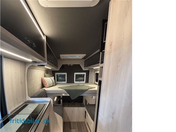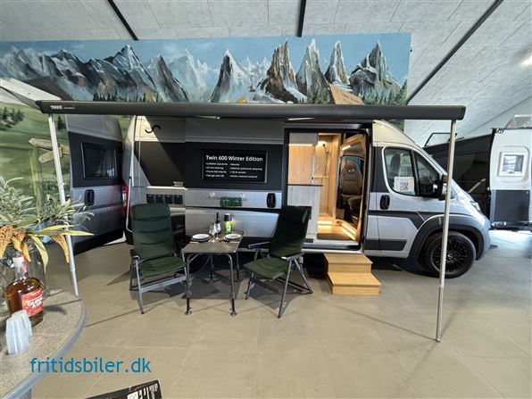 Mega Mobil 600 Twin Edition er bygget på maxi chassi og har 165 Hk. Fuldt vinter isoleret campervan med god plads til 2 personer og en masse udstyr. Med sine kun 6 meter, har man muligheden for at have en langsgående seng på 200 cm i længden eller bruge den tværgående seng. Sengen kan man elevere, så man kan sidde og se tv eller læse en bog.