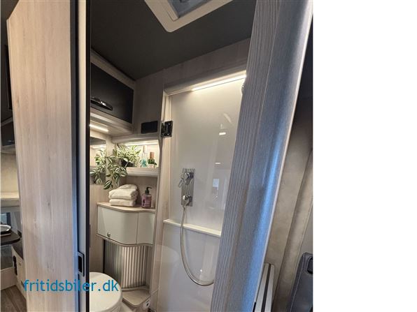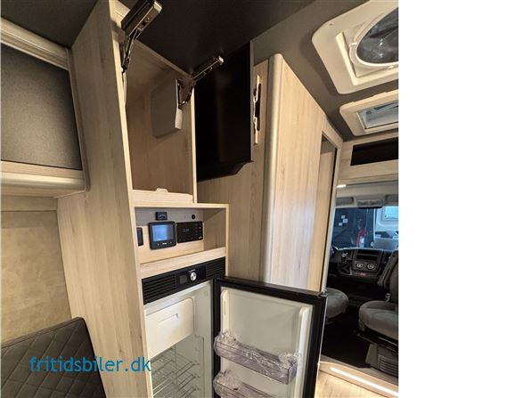 Thule markise, elektrisk spildevands ventil, forberedelse til bakkamera, gas alarm og Victron smart system.