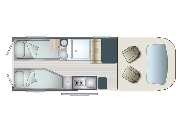 Randger R640 er udstyret med et 138L kompressorkøleskabe. Produktionen af kold luft er betydeligt hurtigere og mere intens end med et absorbsions køleskab. Den indvendige temperatur i køleskabet opretholdes, selv når det er meget varmt udenfor.