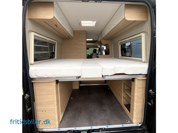 Roadcar designet af Pössl bygget af Dethleffs Roadcar er en campervan fra 2 velrenommeret Tyske fabrikker der har bygget campere i mange år. Vi har i samarbejde med fabrikken fået udvalgte modeller vi kan sælge og levere til helt specielle priser inden foråret, nej der er ikke en bestemt periode man skal købe dem i, ej heller en bestemt udstyrspakke man skal ”tilkøbe” her, er tale om reelle pris inklusiv levering og nummerplader, hvad du end måtte ønske at putte på er helt op til dig, vi stå klar til at hjælpe med at guide dig igennem dit nye campervan eventyr. Disse priser er kun så længe lager haves men ikke kun i dag også i morgen og til januar 😊 Det har ikke nødigt at være dyrt at campere. For 27.000 kr. kan man få vores all in pakke med som bl.a. indeholder Markise, gastilslutning med siv og crash sikring, gas alarm, Radio m bluetooth, bakkamera og måtter i føre kabinen Vi har sammen med Santander fået muligheden for a lave 10 års lån med 4.49 % i Fast Rente med 20 % i udbetaling. Husk vi tag gerne din almindelige bil i bytte Af udstyr kan nævnes Lakeret kofanger, vinduer i begge sider ved sengen, vindue i wc, drejebar bordplade.