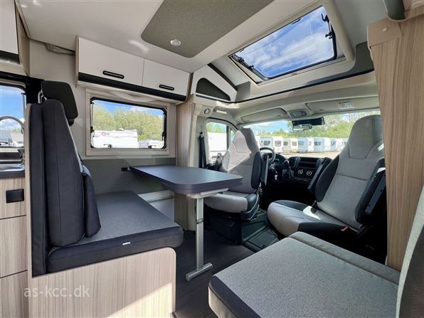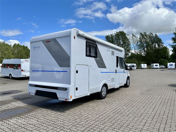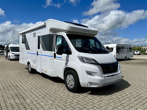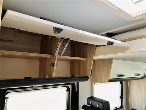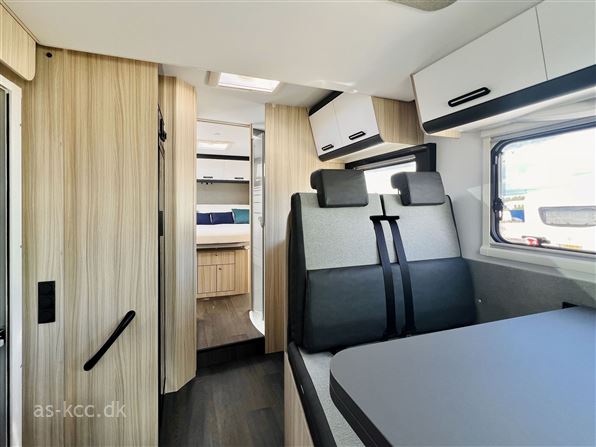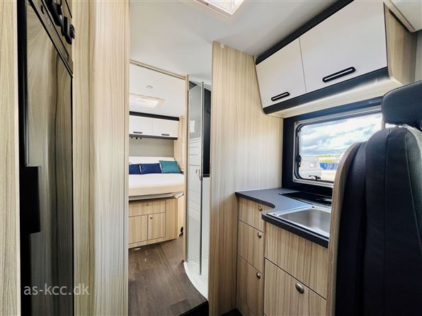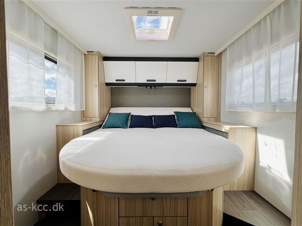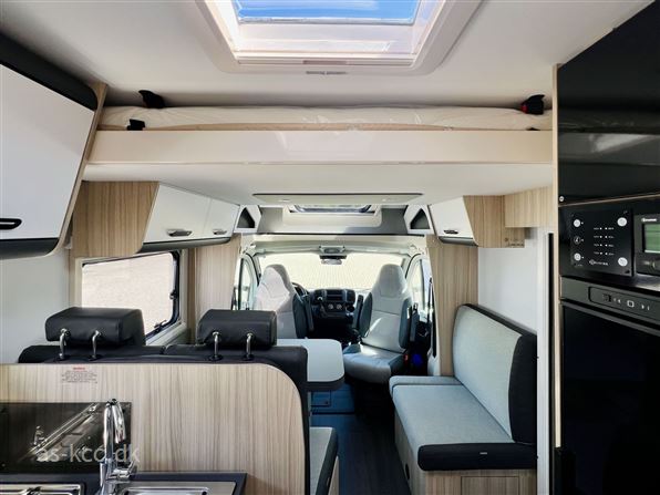 Ny Sun Living S 75 SC automat gear og fritstående dobbelt seng, 5 selepladser og 5 sovepladser. en fantastisk rummelig autocamper med en stor garage. Den har Hæve/sinke seng, Manuelt klimaanlæg i bilen, El sidespejle og en markisse. Truma Combi 6E fyr, isoleret spildevandstank klar til vinter brug. Denne Sun Living Autocamper har en Fiat Euro 6 motor 2,2 L 140 HK med automatgear og adaptiv fartpilot.