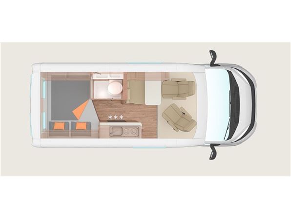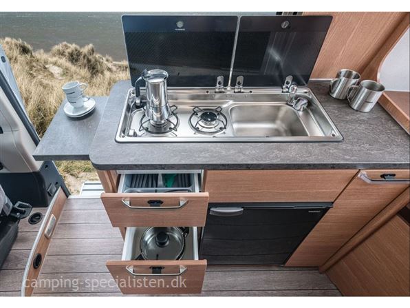 Bilen er spækket med rigtig meget standardudstyr. Alufælge, markise, radio med apple carplay, bakkamera, elektrisk indgangstrin, myggenetsdør - Alt det du mange gange skal tilkøbe ved siden af standardmodellerne. Det hele er med i denne kompakte 540 model, med tværvendt dobbeltseng, rummeligt badeværelse, køkken med god bordplads og kompressor køleskab.
