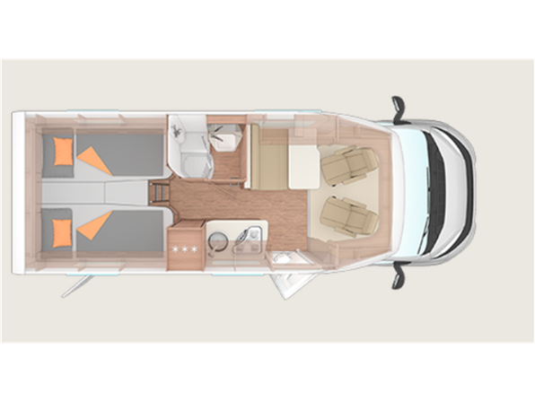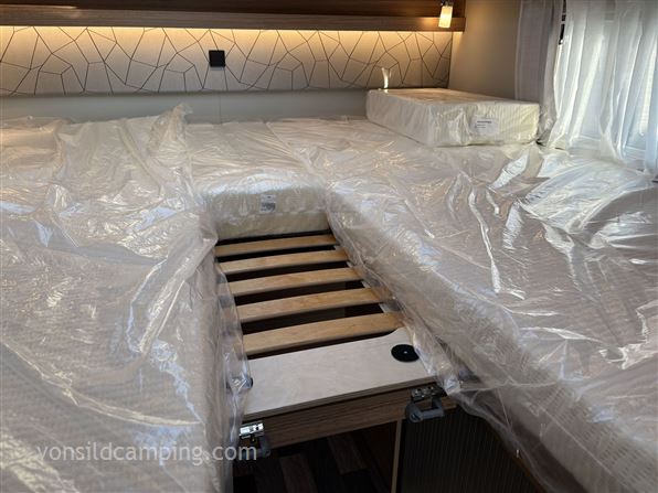Weinsberg 600 MEG er indrettet med enkeltsenge i bag, med mulighed for udtræk til dobbeltseng. Toiletrum med wc, og bade mulighed. Køkkenet er udstyret med stort 142 L. køleskab, samt en klappe der gør køkkenet større. Siddegruppen rummer 2 sikkerhedsseler så man kan komme 4 afsted på tur, ligeledes har bordet en mulighed for udvidelse. Totalvægten er 3500 Kg og kan køres med alm. kørekort til bil.