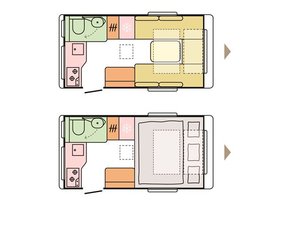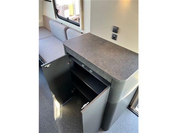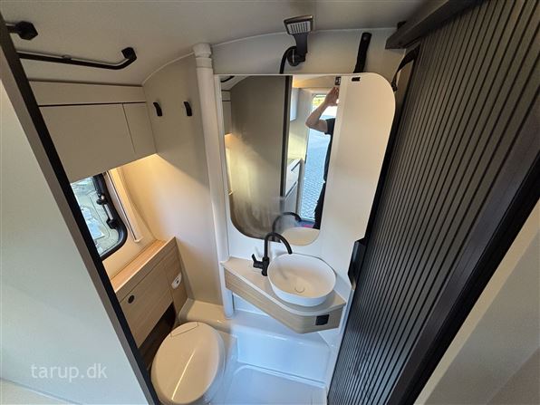 NY udgave af Action 391 LH - Enkeltsenge sidehængt bord, Soundbar musiksystem, LED kanallys, udtræksbord ved kommode, gaskasse med gasdæmper, endekøkken, Soundbar, Truma Combi-varme (gas), panorama-vindue, el-gulvvarme, Stort 140 l. køleskab med fryser, alu-fælge, udendørs bruser, helt nyt badeværelse!