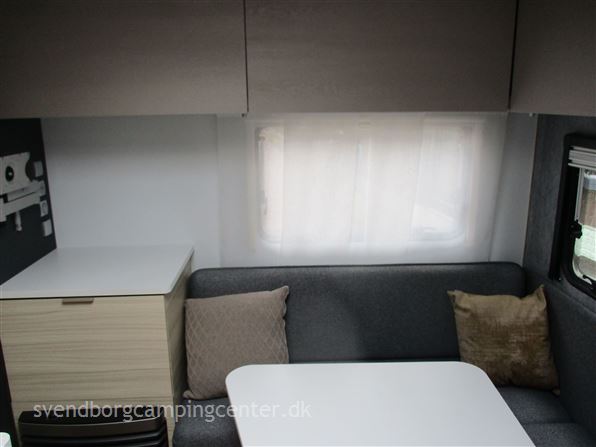 Lækker lille rejsevogn med dejlig siddegruppe og køkken overfor og i dobbeltseng med elevation samt toilet. Masser af lækker LED belysning, Gulvvarme, USB stik, Bluetooth system + højtalere så du kan streame alt musik fra din smartphone. Kan gratis nedvejes. Velkommen til Svendborg campingcenter Fyns hyggeligste.