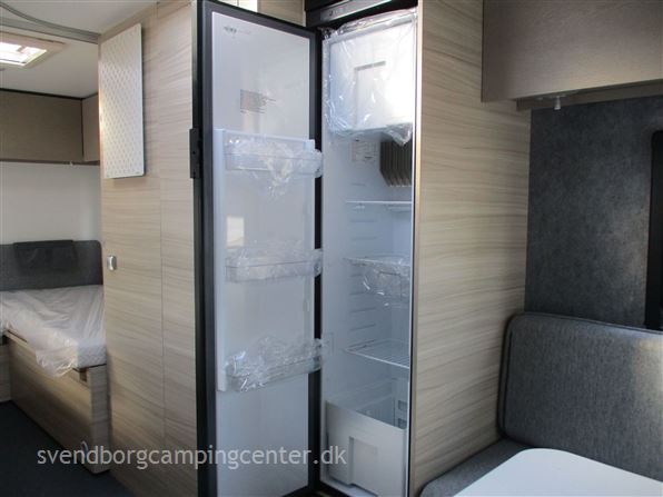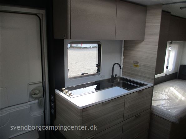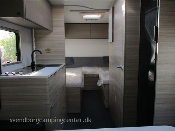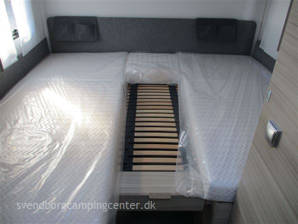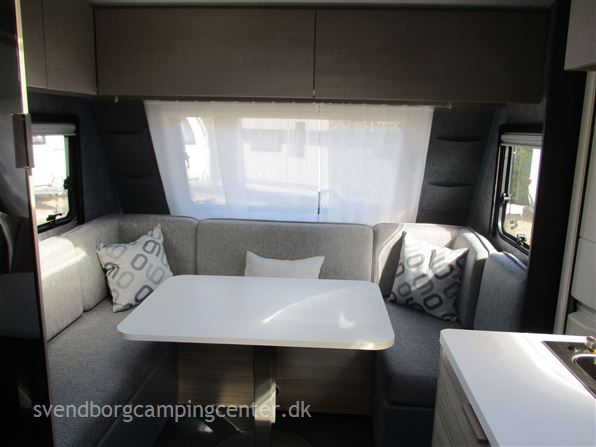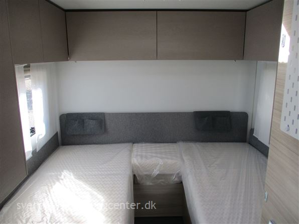 Kom og se denne super flotte jubilæums model i en lækker grå farve og med sorte kanter på alle serviceklapper og luger, nyt flot logo ( 60 selection ) og nyt polster samt Evopore komfortmadras med elevation. Indretning: rundsiddegruppe i front, dejligt køkken med sort vandhane og toilet overfor. I bagenden 2 enkeltsenge. Udstyr: Alufælge, reservehjul, stænkklapper, spildevandsbeholder, ultra-heat samt batterilader + batteriboks.
