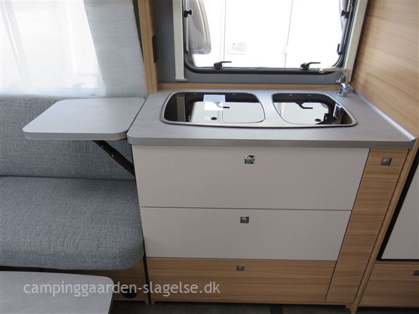 Meget fine toilet faciliteter. Det gode størrelse køleskab med indbygget fryser. Køkken hvor der er plads til at vise sine kreative kunnen. Vognen har fabriks monteret ekstra udstyr senge udvidelse kr. 2700,- som er inkluderet i prisen.