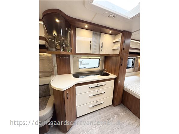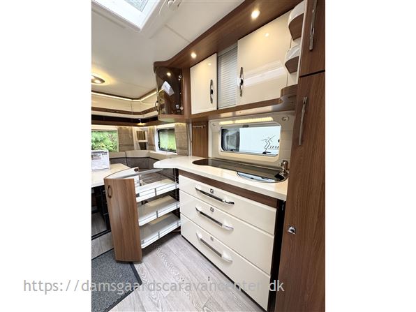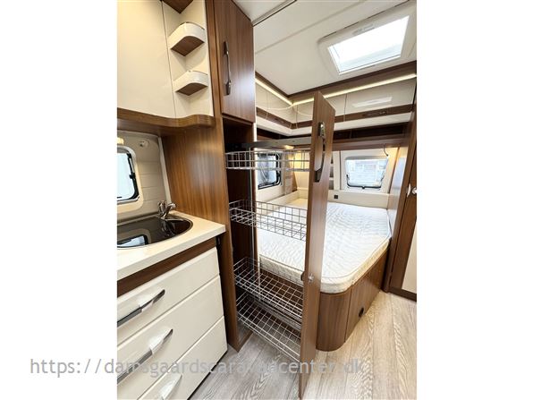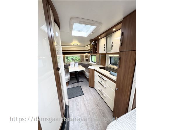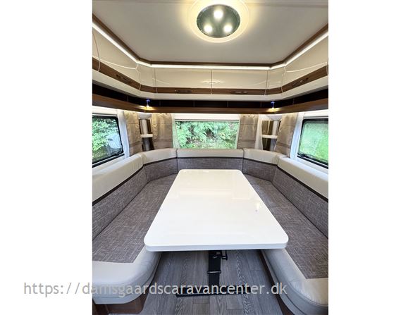 Vognen er med dobbeltseng, toilet i front. Stor lækker rundsiddegruppe bagerst samt køkken med stort køleskab midt i vognen. Endvidere har vognen har ambiente belysning samt meget opbevaringsplads.