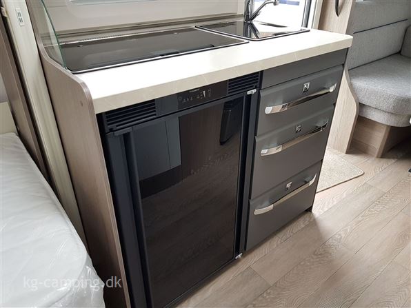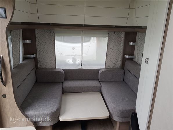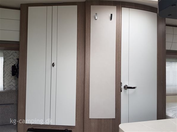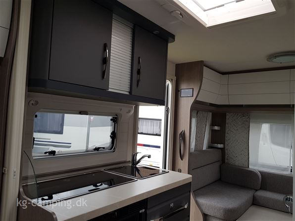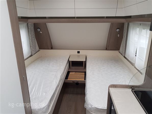Lys velindrettet lille vogn med enkeltsenge med lameludtræk. Vognen har følgende ekstraudstyr: 1.500 kg. aksel 3.999 kr. - Sengeudvidelse 3.699 kr. - Dobb. USB stik 599 kr. - EL-Gulvtemperering 6.299 kr. - TV-holder 2.599 kr.