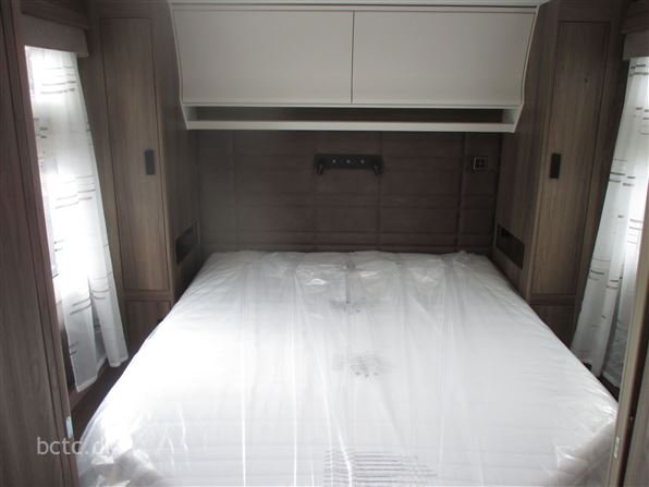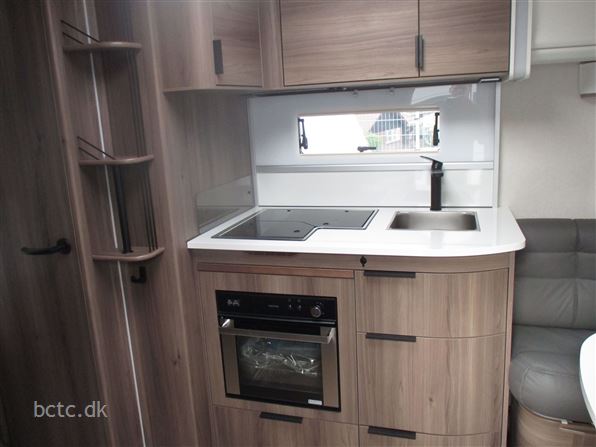 PREMIUM LINE Kampagen-model med stor centreret dobbeltseng (queens bed) med fri passage rundt om, samt dejlig stor rundsiddegruppe. En ægte vintervogn med ALDE 3030 centralvarme, vandbåren gulvvarme, lædersæder, gasbageovn, ATC elektronisk anti-slingre-system, stort køleskab med KOMPRESSOR, Komfort-pakke, Wifi m/ router, elektrisk indgangstrin, håndklædetørrer, nakkestøtter, serviceklap og meget mere.