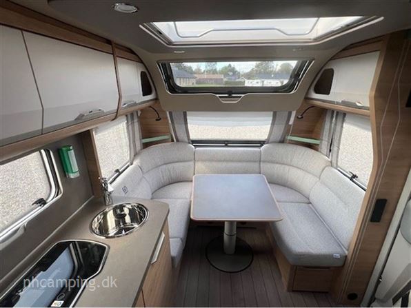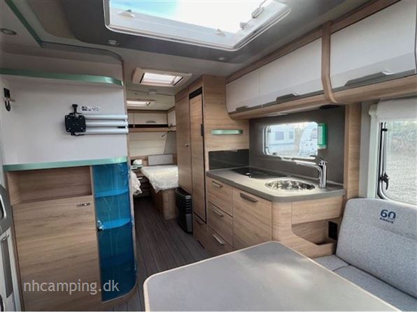 Knaus Südwind 540 UE "60 Years Celebration" Enkeltsenge, Lameludtræk mellem sengene, Slim-Tower Køleskab, Premium dør med vindue, Myggenets dør, Ambientbelysning, Tv-holder, Al-ko AAA Premium bremser, Sky Roof, 1800kg aksel,